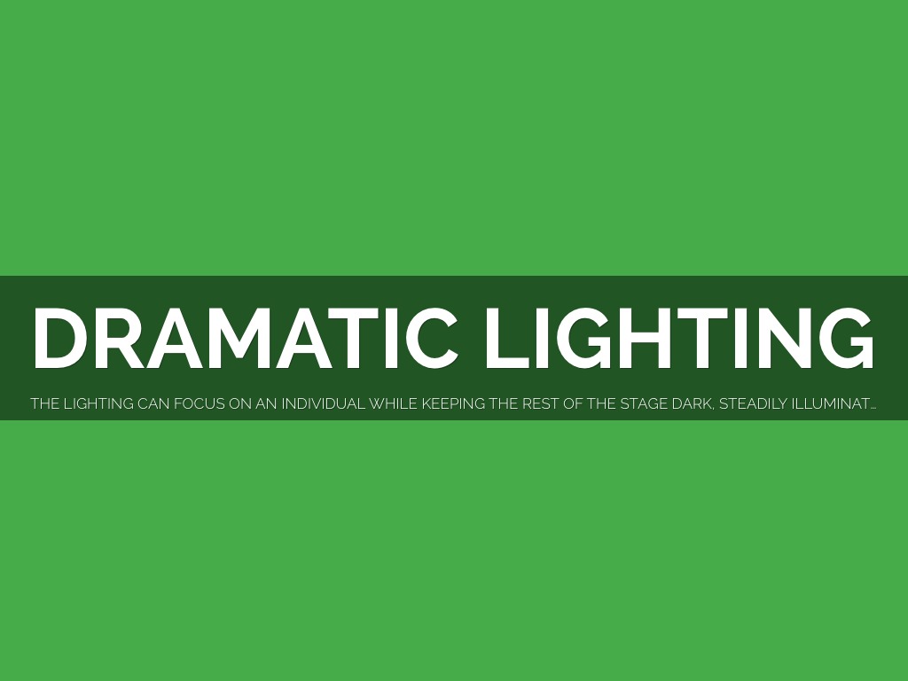 The lighting can focus on an individual while keeping the rest of the stage dark, steadily illuminate a scene
