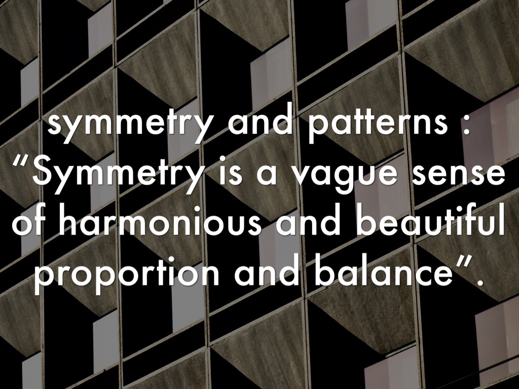 “Symmetry is a vague sense of harmonious and beautiful proportion and balance”.