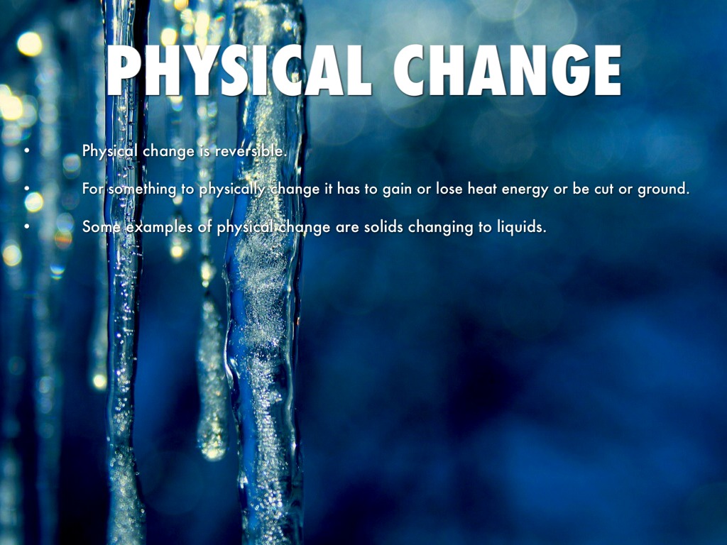 For something to physically change it has to gain or lose heat energy or be cut or ground.