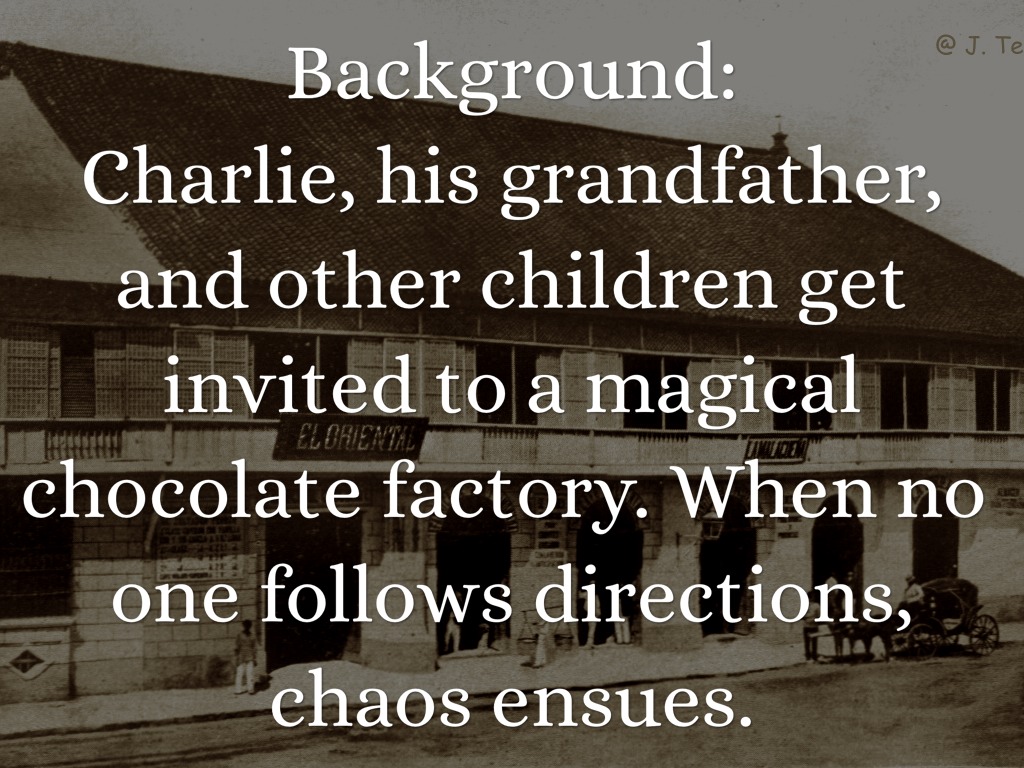 Charlie, his grandfather, and other children get invited to a magical chocolate factory. When no one follows directions, chaos ensues.