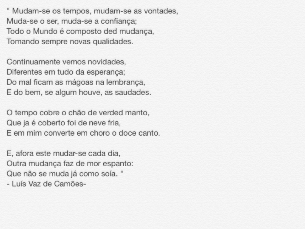 "E, AFORA ESTE MUDAR-SE CADA DIA, OUTRA MUDANÇA FAZ DE MOR ESPANTO..."