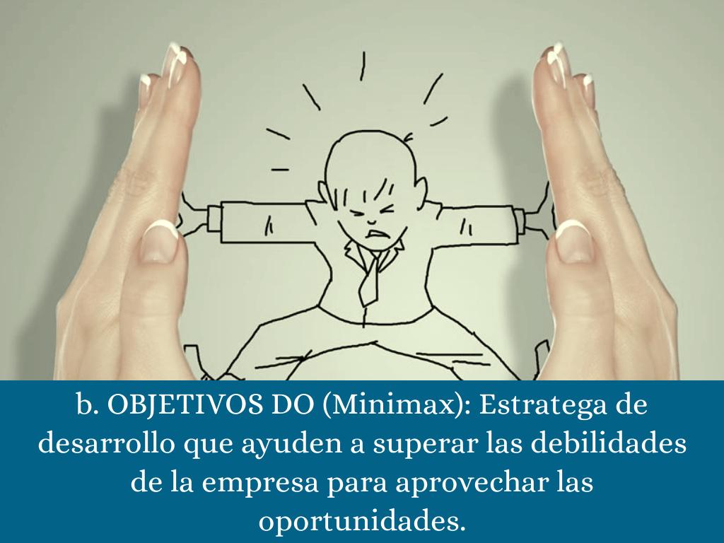 b. OBJETIVOS DO (Minimax): Estratega de desarrollo que ayuden a superar las debilidades de la empresa para aprovechar las oportunidades.