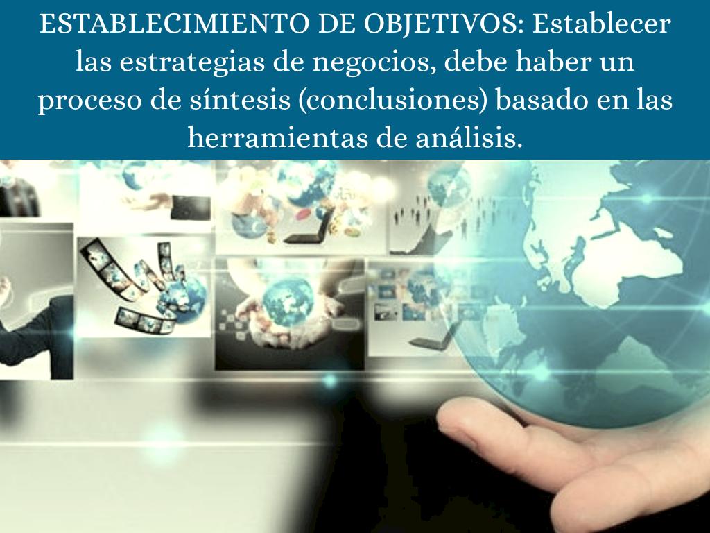 ESTABLECIMIENTO DE OBJETIVOS: Establecer las estrategias de negocios, debe haber un proceso de síntesis (conclusiones) basado en las herramientas de análisis.