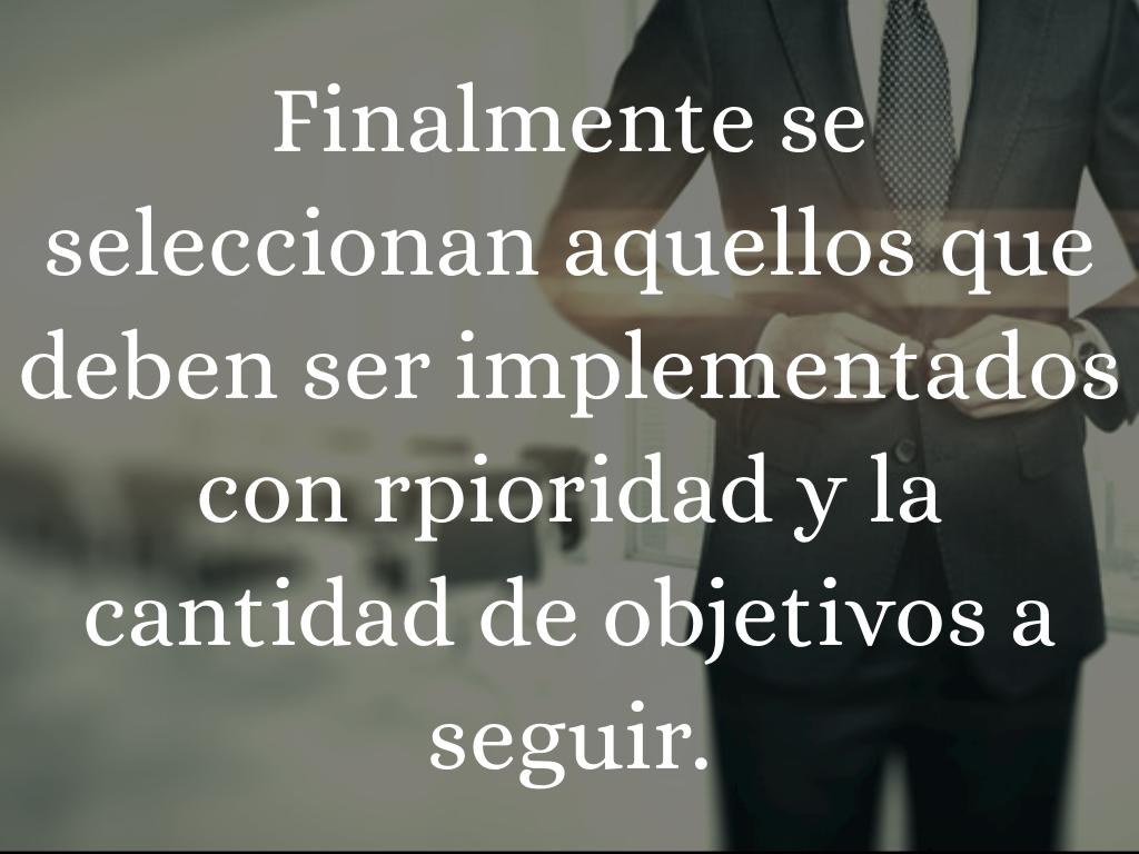 Finalmente se seleccionan aquellos que deben ser implementados con rpioridad y la cantidad de objetivos a seguir.