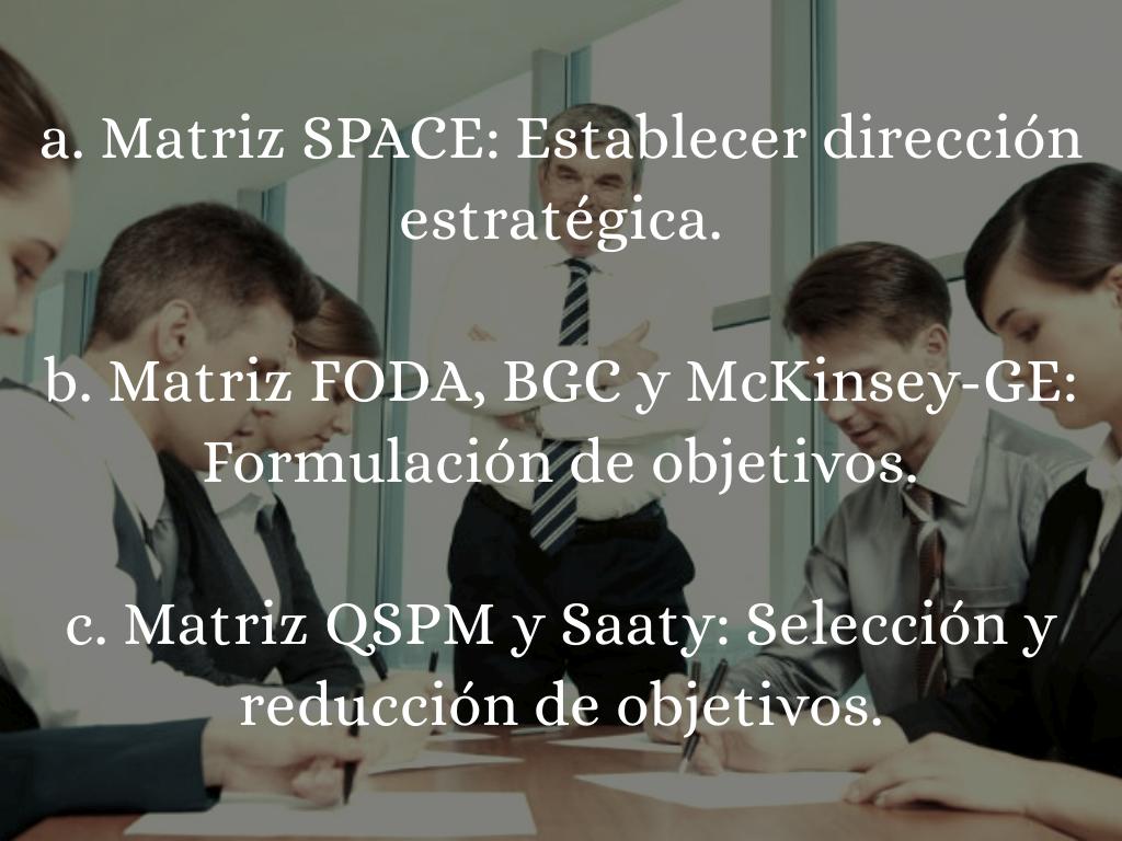 b. Matriz FODA, BGC y McKinsey-GE: Formulación de objetivos.