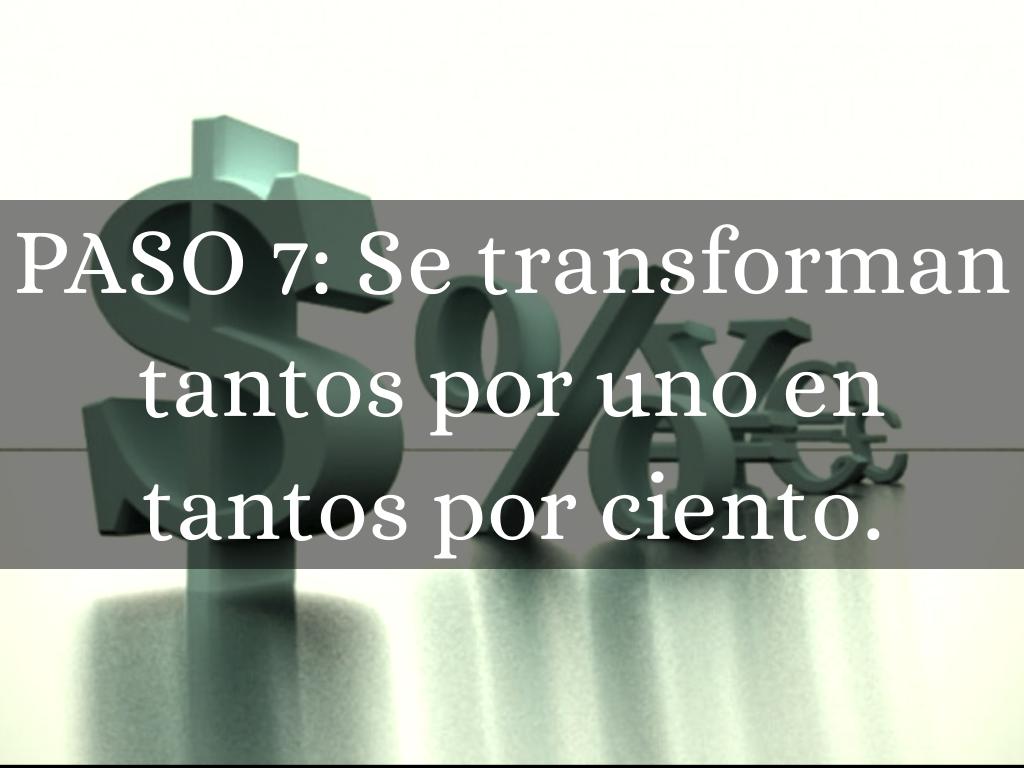 PASO 7: Se transforman tantos por uno en tantos por ciento.