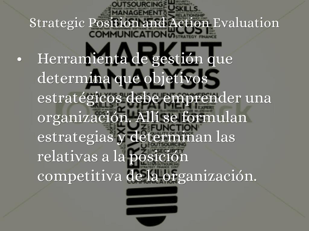 - Herramienta de gestión que determina que objetivos estratégicos debe emprender una organización. Allí se formulan estrategias y determinan las relativas a la posición competitiva de la organización.