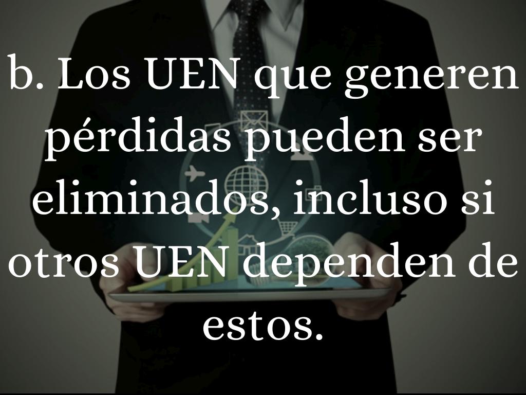 b. Los UEN que generen pérdidas pueden ser eliminados, incluso si otros UEN dependen de estos.