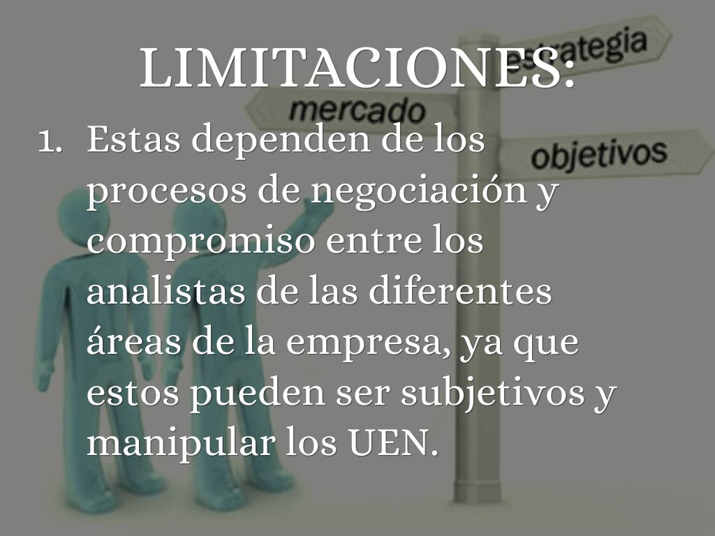 - Estas dependen de los procesos de negociación y compromiso entre los analistas de las diferentes áreas de la empresa, ya que estos pueden ser subjetivos y manipular los UEN.
