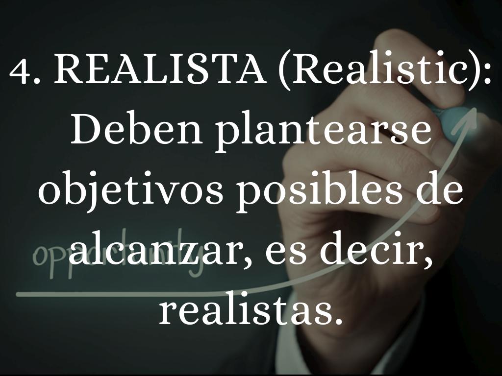 4. REALISTA (Realistic): Deben plantearse objetivos posibles de alcanzar, es decir, realistas.