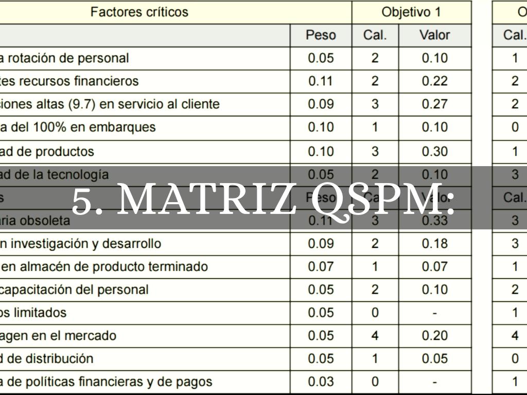 c. Matriz QSPM y Saaty: Selección y reducción de objetivos.