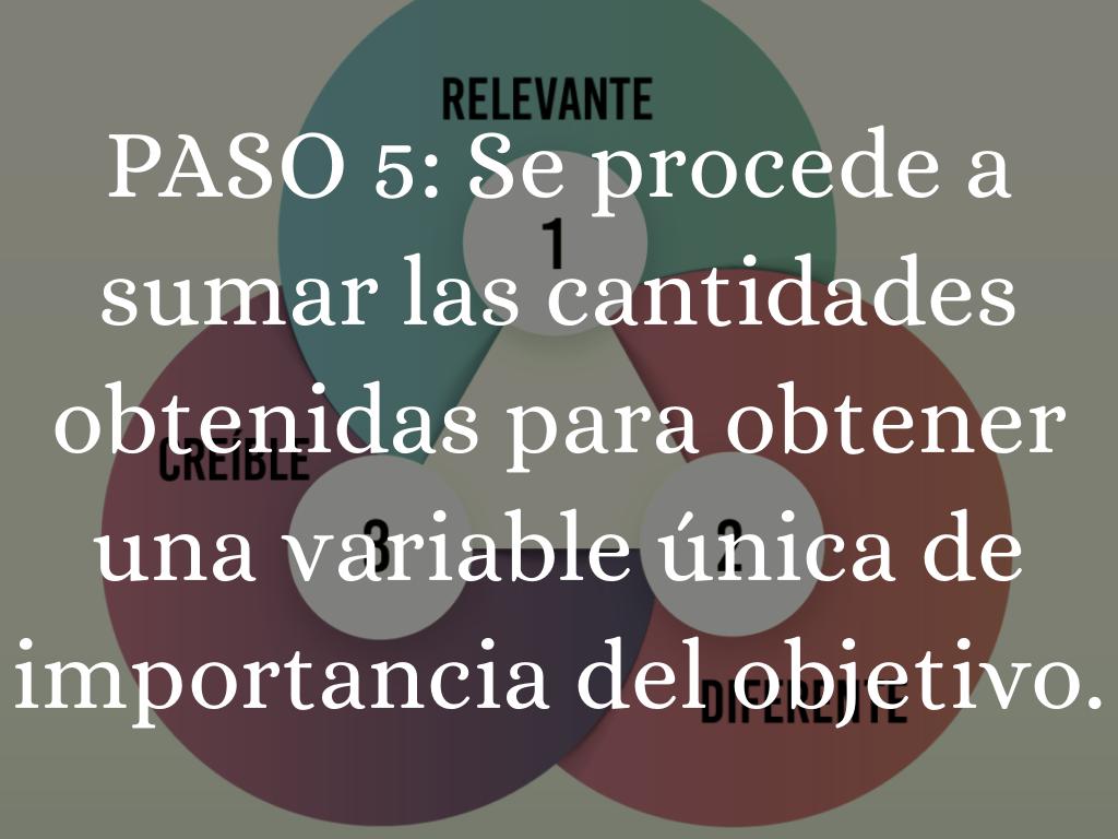 PASO 5: Se procede a sumar las cantidades obtenidas para obtener una variable única de importancia del objetivo.