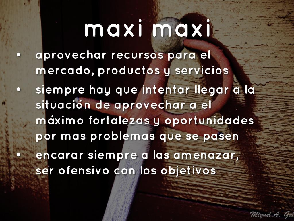 simplemente es maximizar las fortalezas que estén en la organización y minimizar las amenazas que estén, hay que saber usar las fortalezas con las que se cuentan.