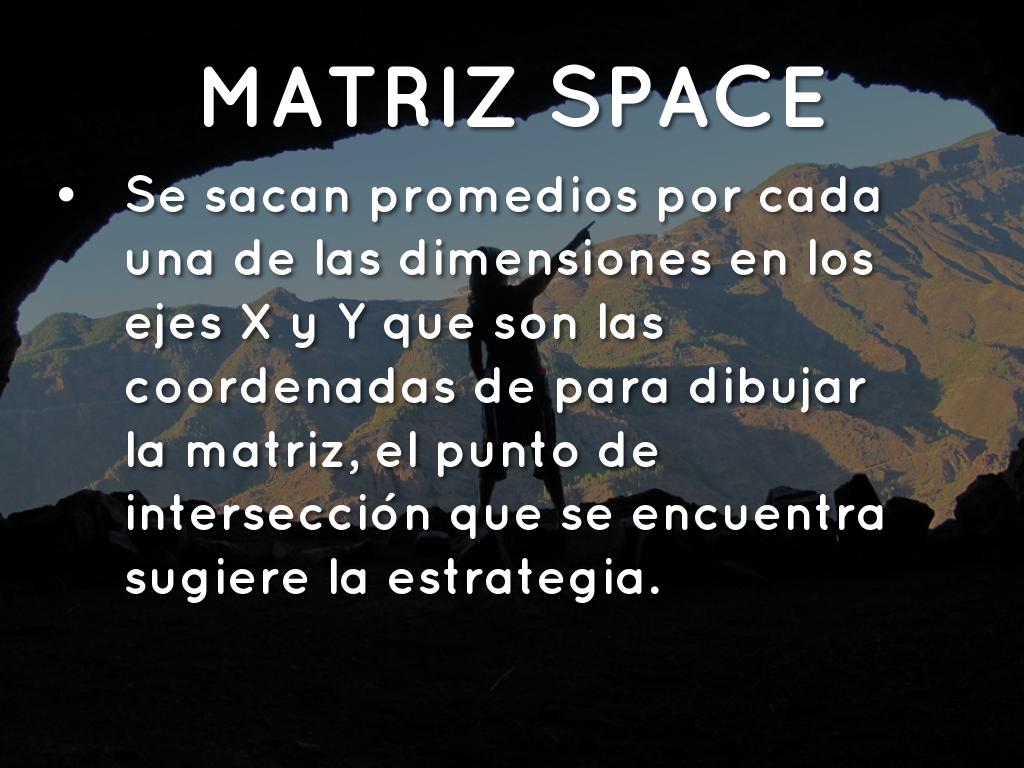 Se sacan promedios por cada una de las dimensiones en los ejes X y Y que son las coordenadas de para dibujar la matriz, el punto de intersección que se encuentra sugiere la estrategia.