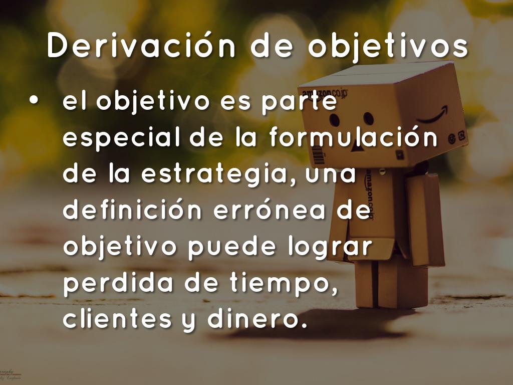 el objetivo es parte especial de la formulación de la estrategia, una definición errónea de objetivo puede lograr perdida de tiempo, clientes y dinero.