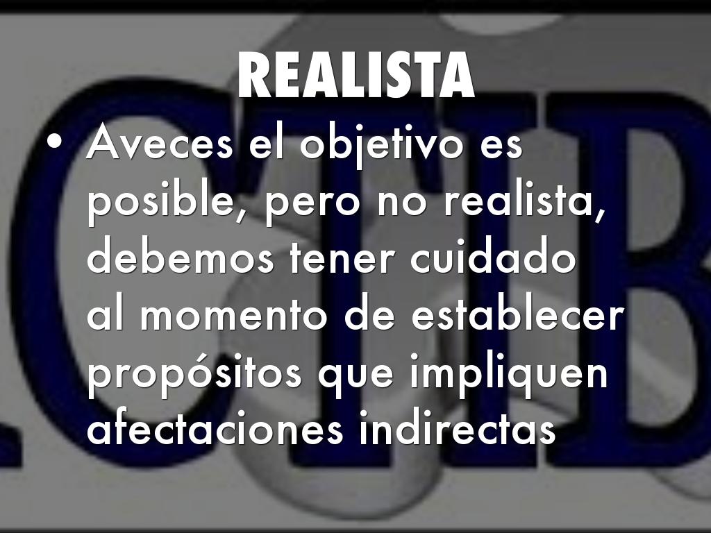 - Aveces el objetivo es posible, pero no realista, debemos tener cuidado al momento de establecer propósitos que impliquen afectaciones indirectas