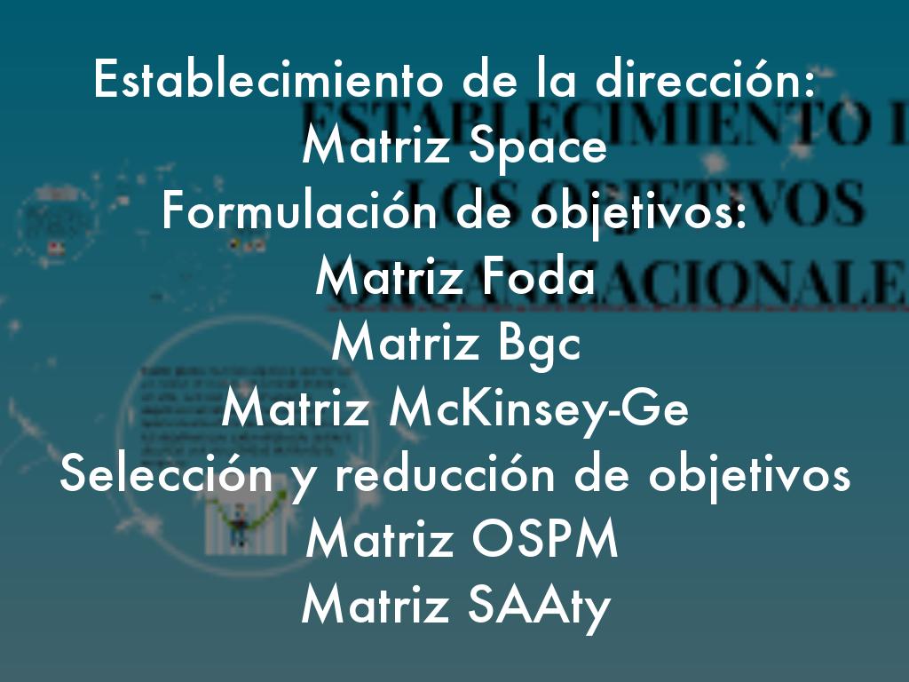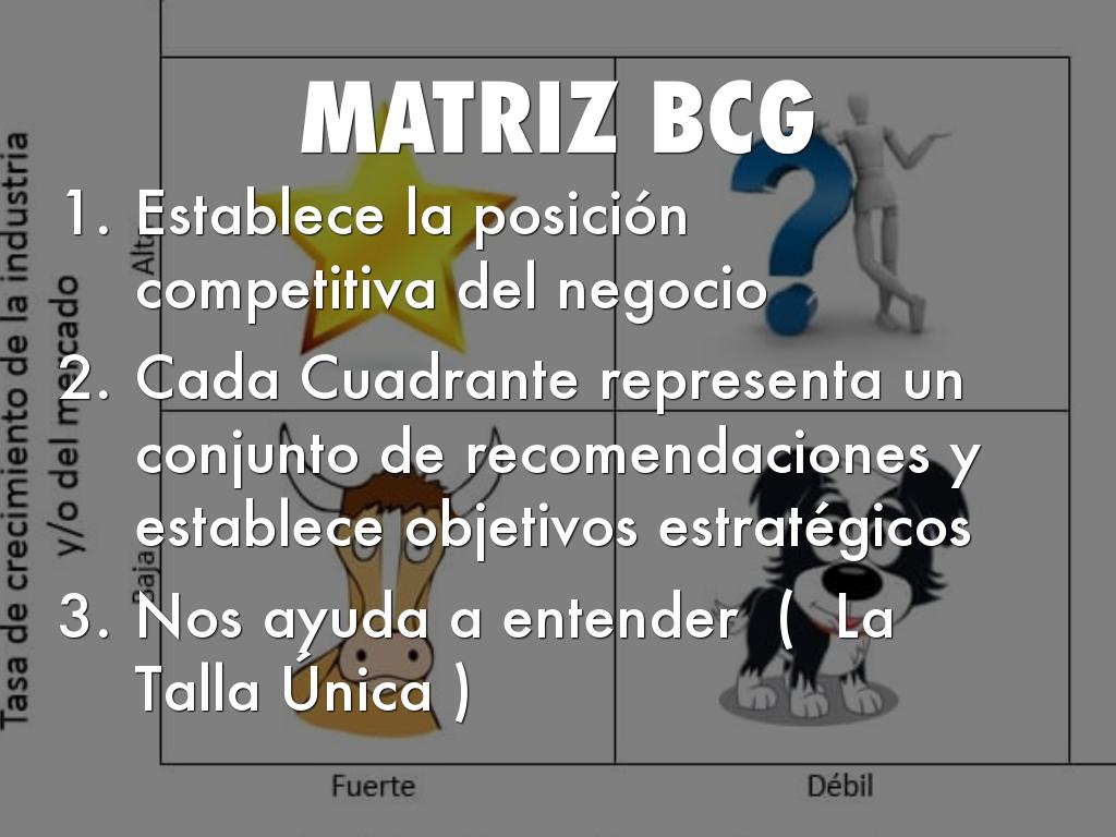 - Es utilizada para determinar que objetivos estratégico debe emprender la compañía