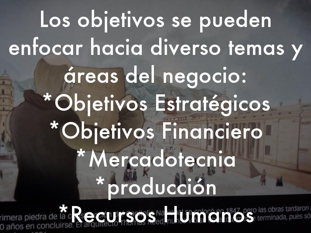 Los objetivos se pueden enfocar hacia diverso temas y áreas del negocio: