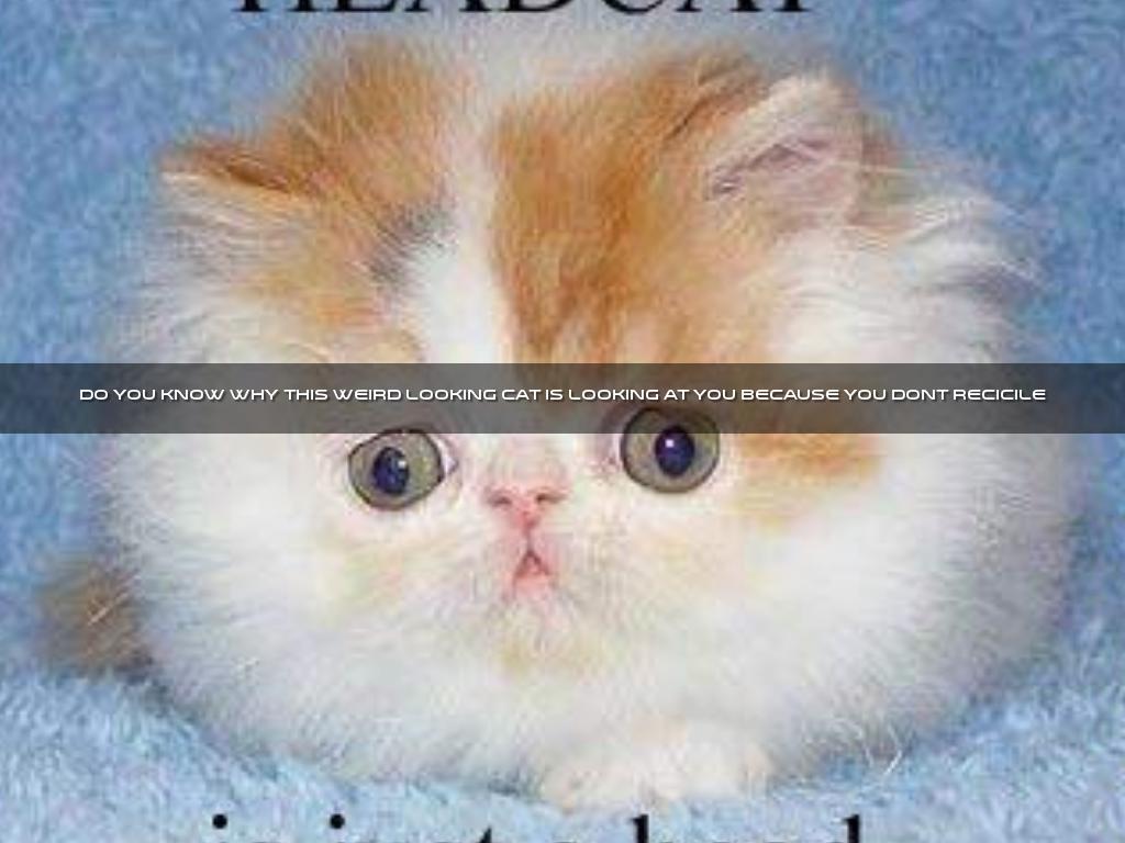DO YOU KNOW WHY THIS WEIRD LOOKING CAT IS LOOKING AT YOU BECAUSE YOU DONT RECICILE