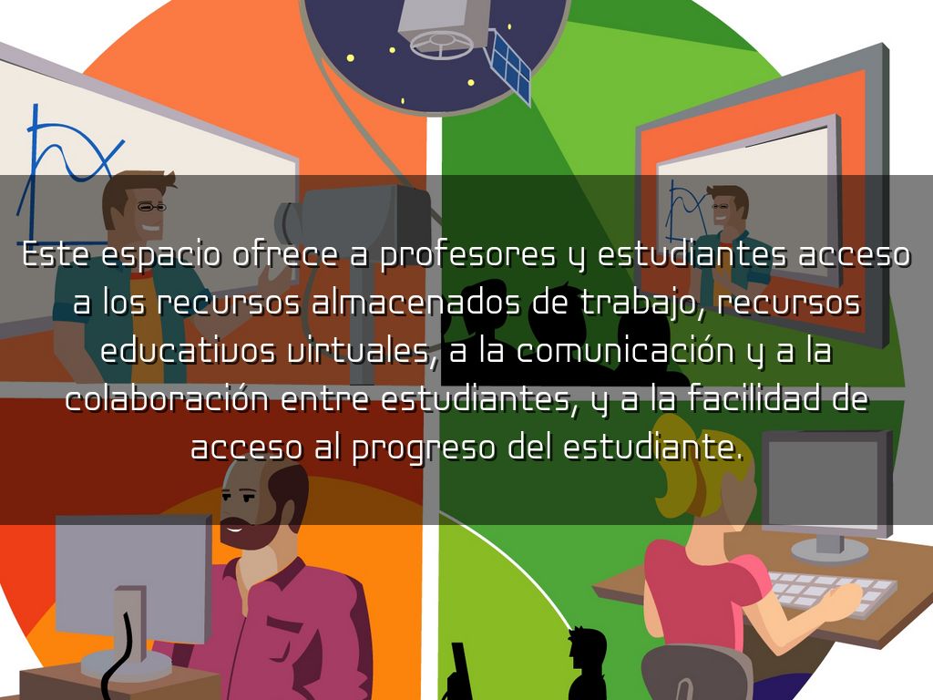 Este espacio ofrece a profesores y estudiantes acceso a los recursos almacenados de trabajo, recursos educativos virtuales, a la comunicación y a la colaboración entre estudiantes, y a la facilidad de acceso al progreso del estudiante.