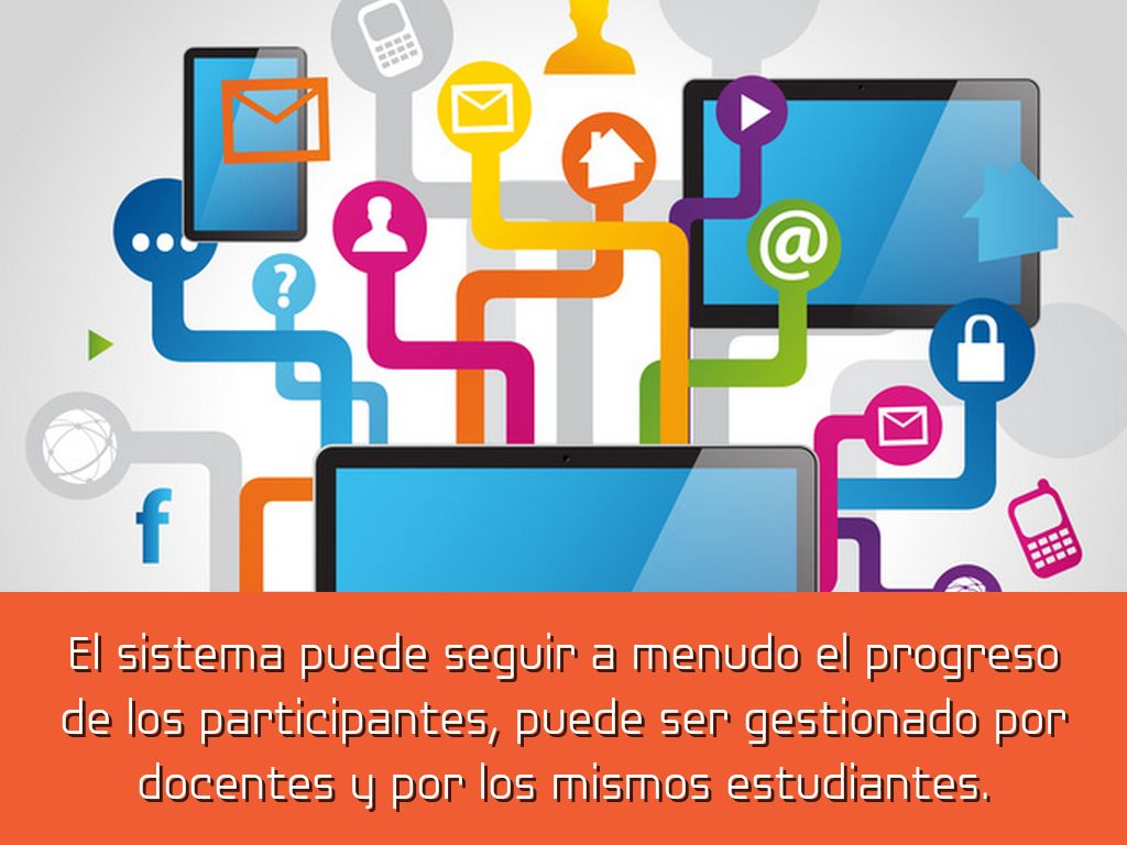 El sistema puede seguir a menudo el progreso de los participantes, puede ser gestionado por docentes y por los mismos estudiantes.