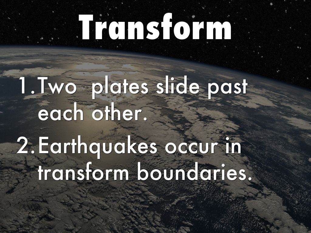 - Earthquakes occur in transform boundaries.
