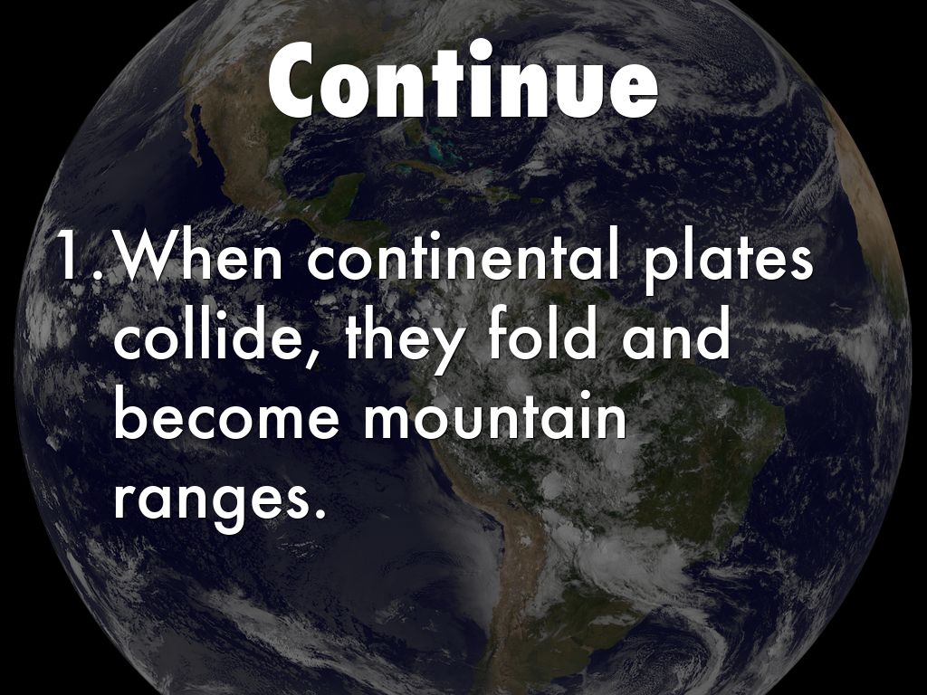 - When continental plates collide, they fold and become mountain ranges.