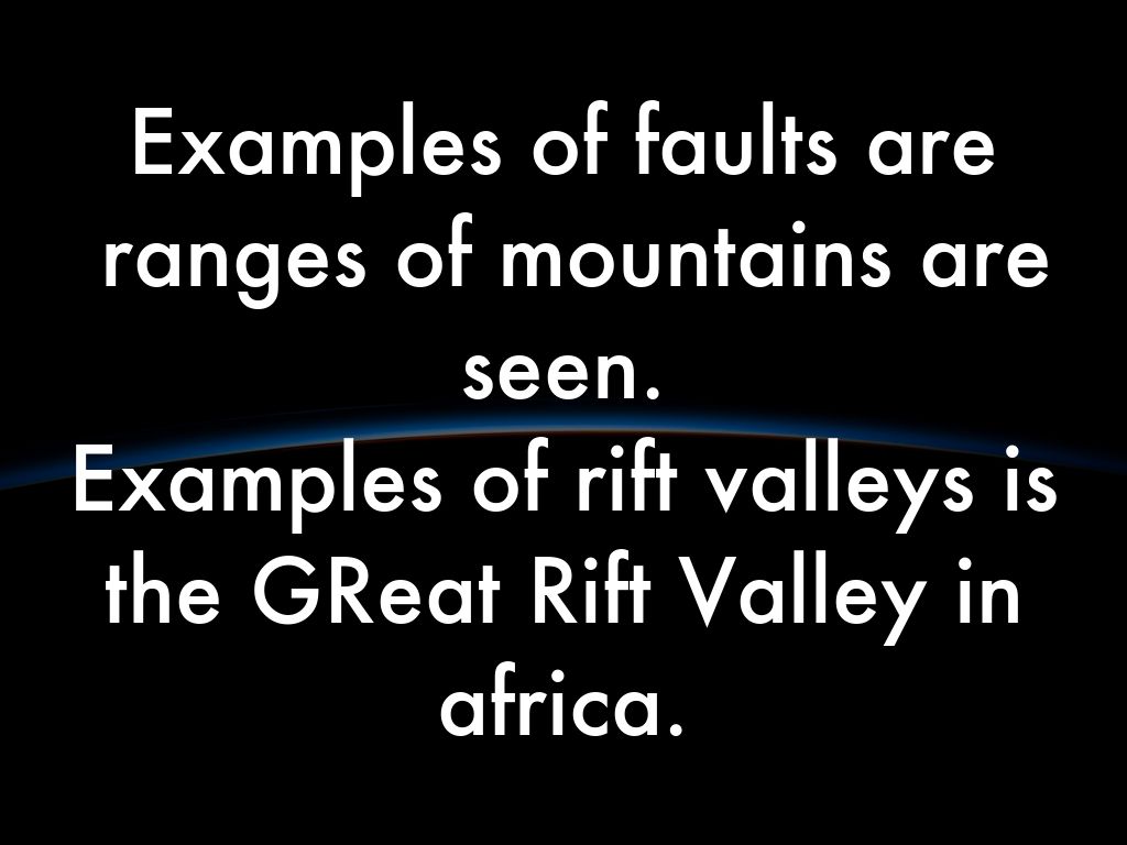 Examples of faults are ranges of mountains are seen.