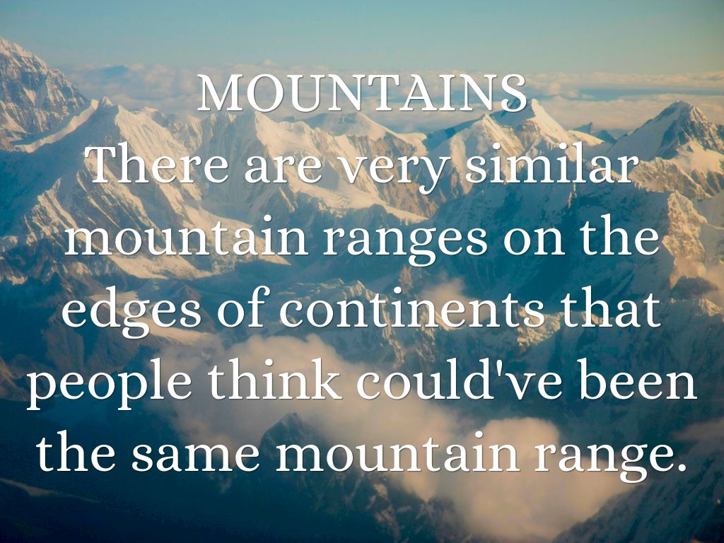 There are very similar mountain ranges on the edges of continents that people think could've been the same mountain range.