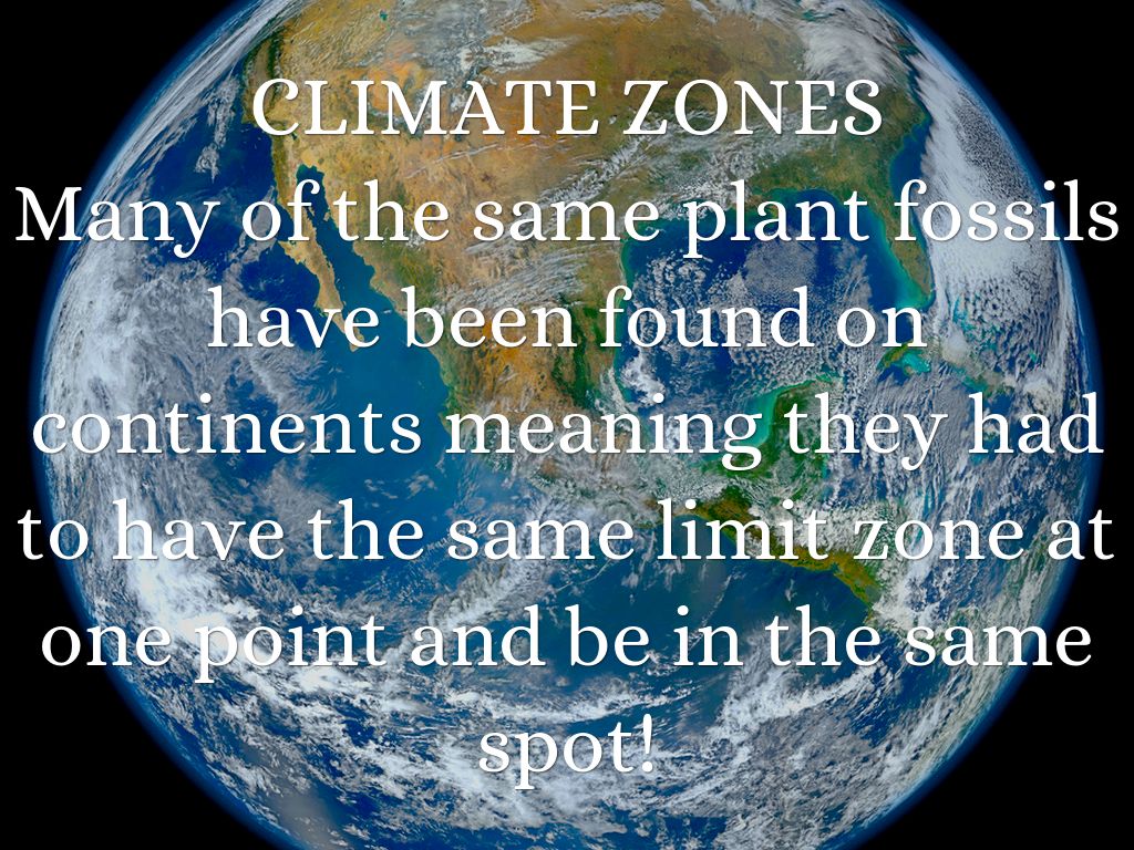 Many of the same plant fossils have been found on continents meaning they had to have the same limit zone at one point and be in the same spot!
