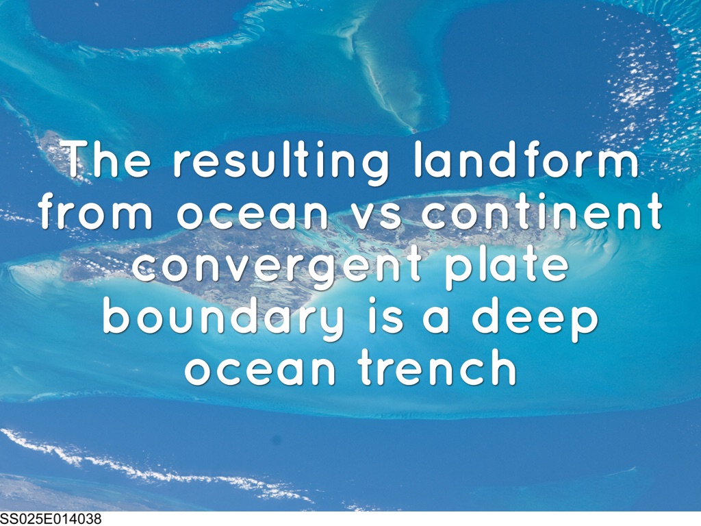 The resulting landform from ocean vs continent convergent plate boundary is a deep ocean trench