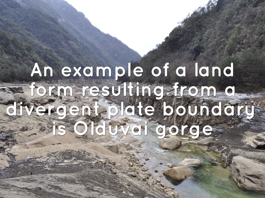 An example of a land form resulting from a divergent plate boundary is Olduvai gorge