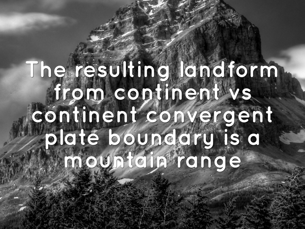 The resulting landform from continent vs continent convergent plate boundary is a mountain range