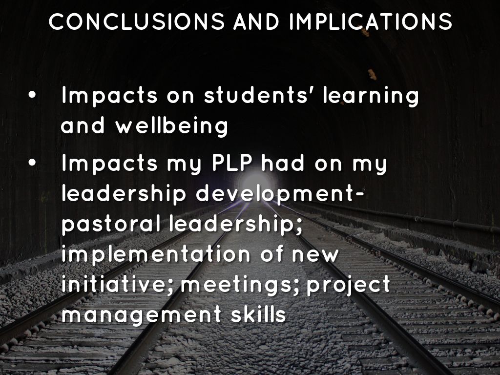 Impacts my PLP had on my leadership development- pastoral leadership; implementation of new initiative; meetings; project management skills