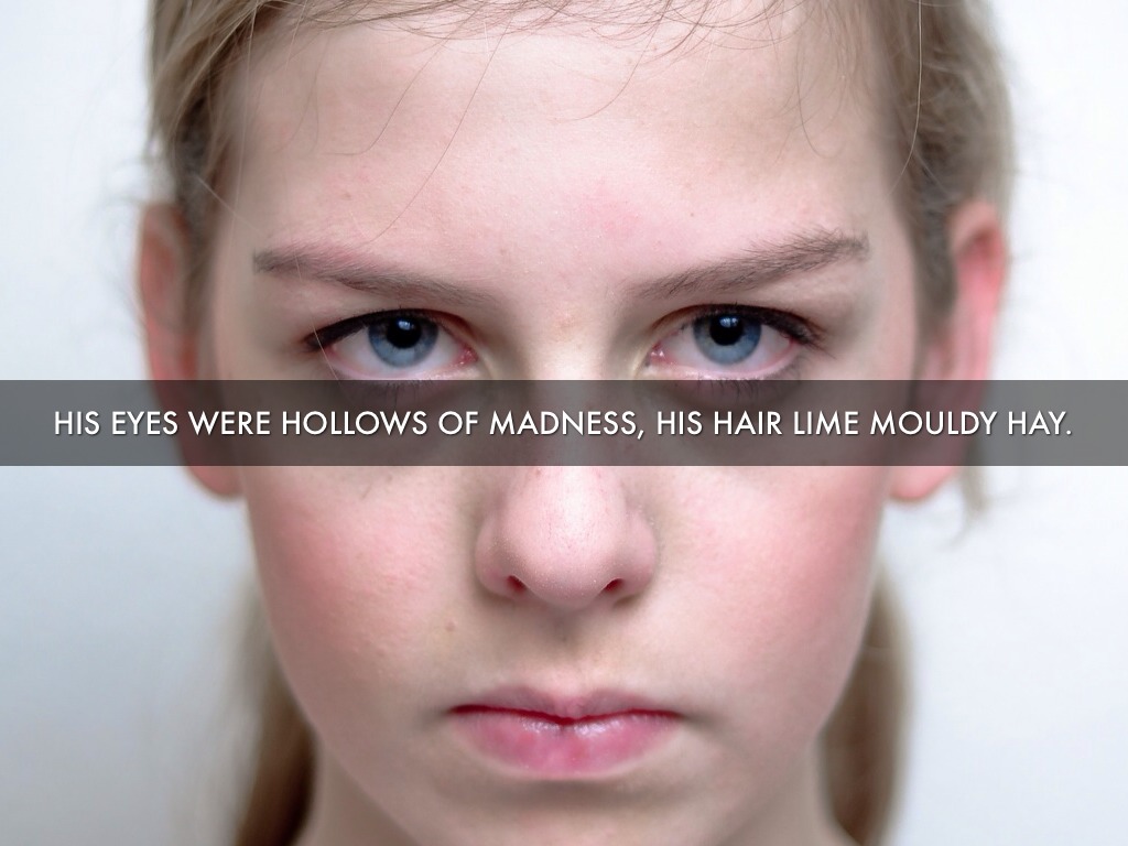 HIS EYES WERE HOLLOWS OF MADNESS, HIS HAIR LIME MOULDY HAY.