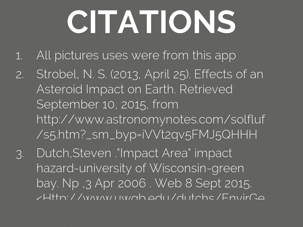 Strobel, N. S. (2013, April 25). Effects of an Asteroid Impact on Earth. Retrieved September 10, 2015, from