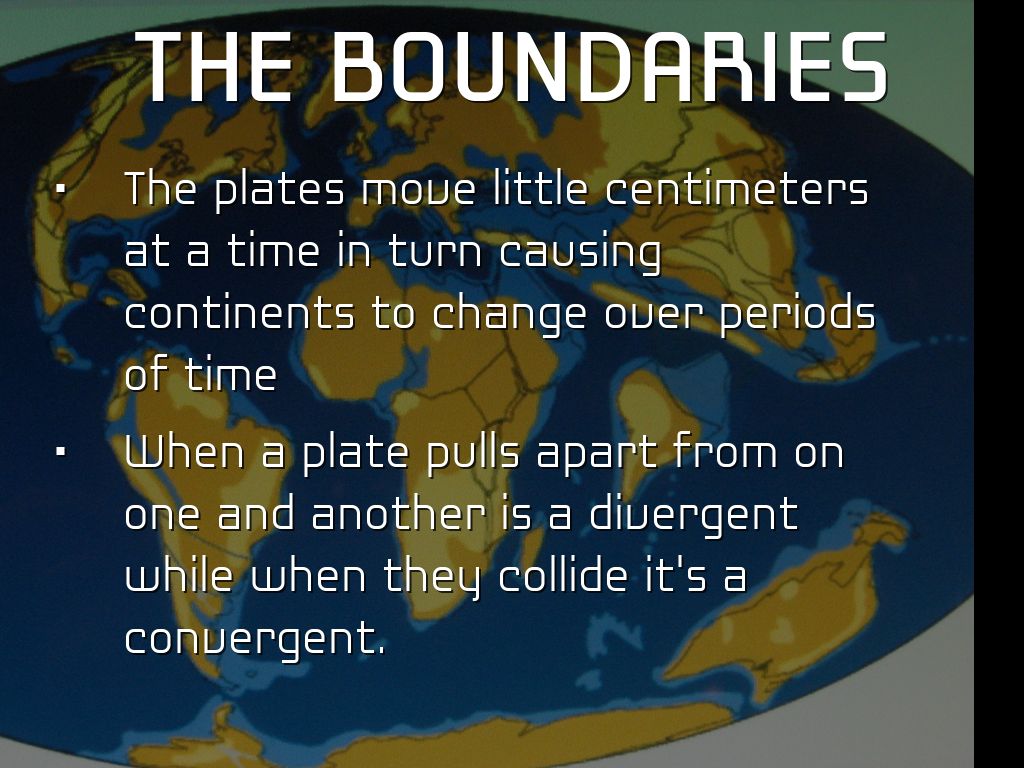 The plates move little centimeters at a time in turn causing continents to change over periods of time