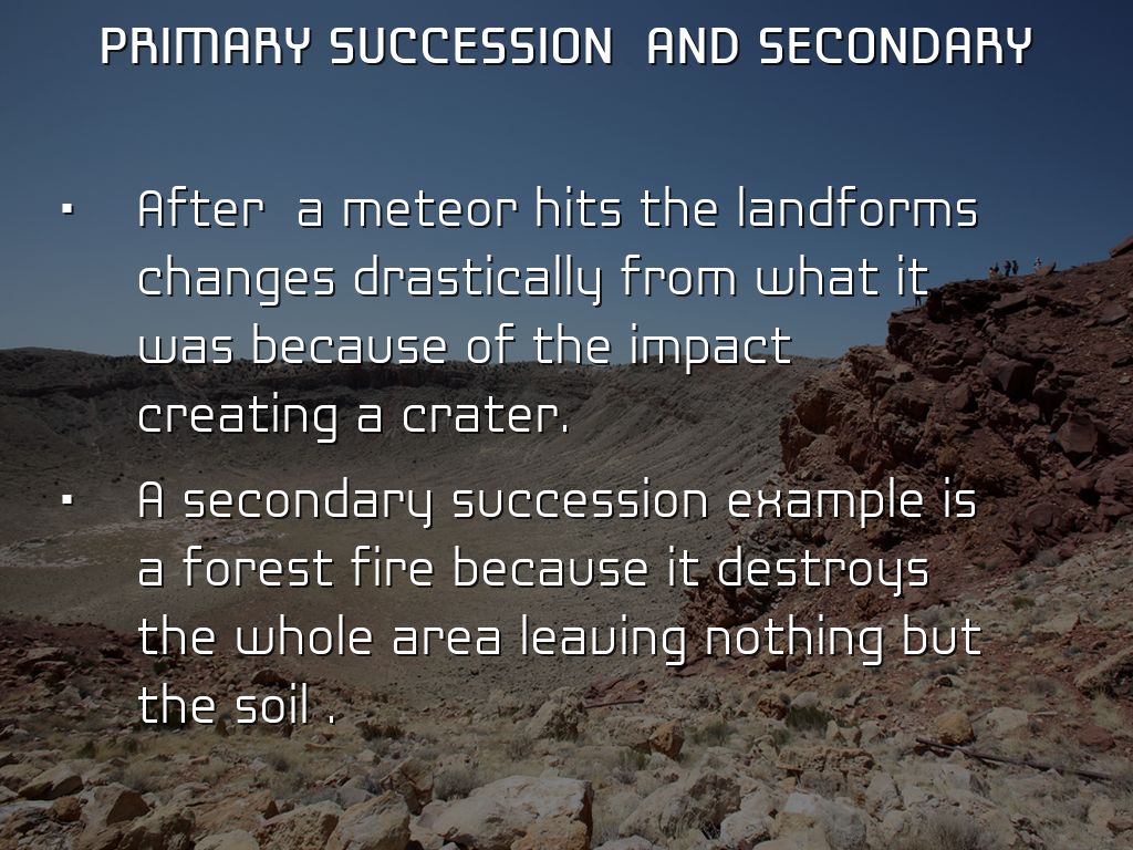After a meteor hits the landforms changes drastically from what it was because of the impact creating a crater.