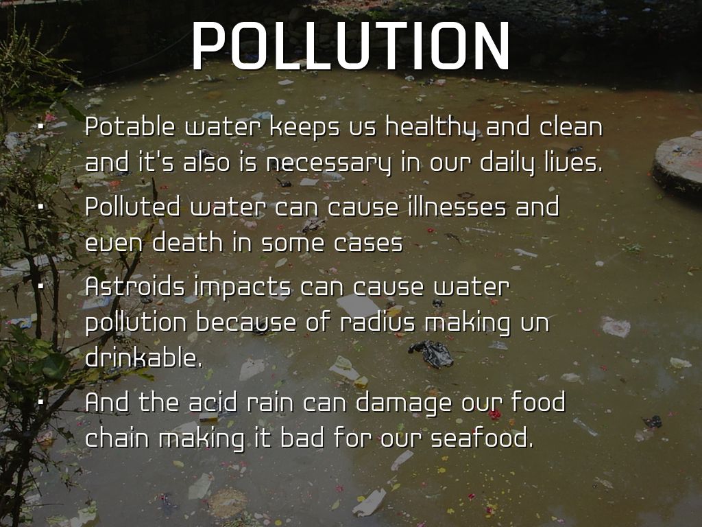 Astroids impacts can cause water pollution because of radius making un drinkable.