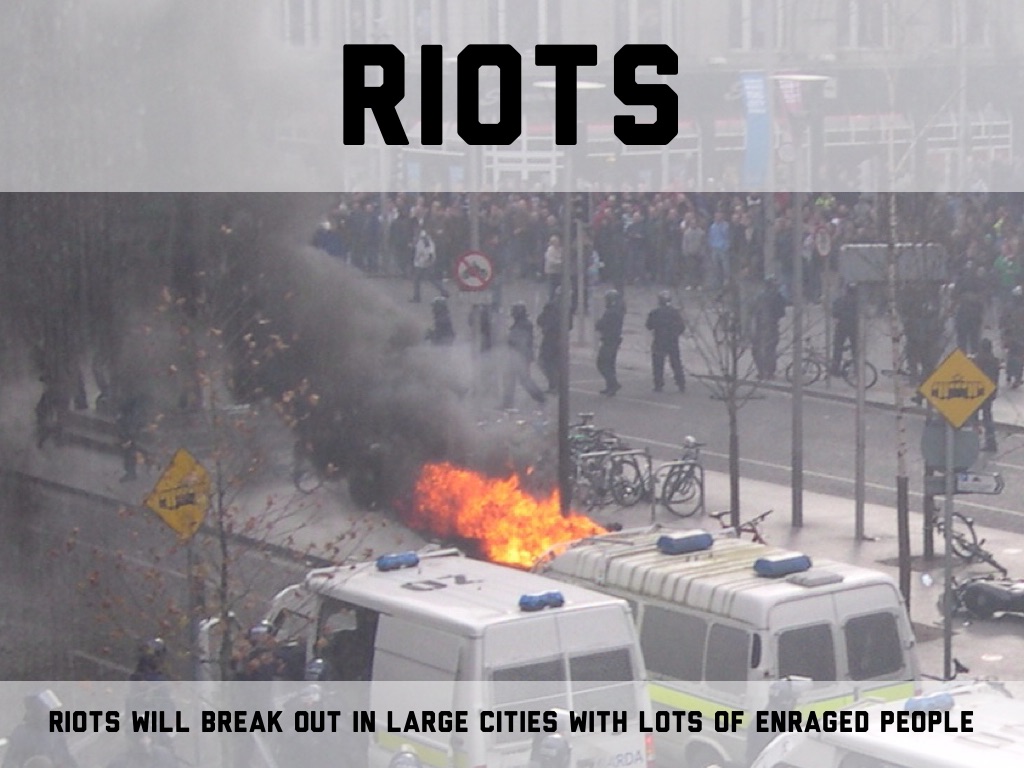 RIOTS WILL BREAK OUT IN LARGE CITIES WITH LOTS OF ENRAGED PEOPLE