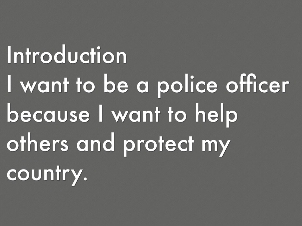 I still want to be a cop because I would like to go on an exciting adventure and get a nice place to live and protect my country.
