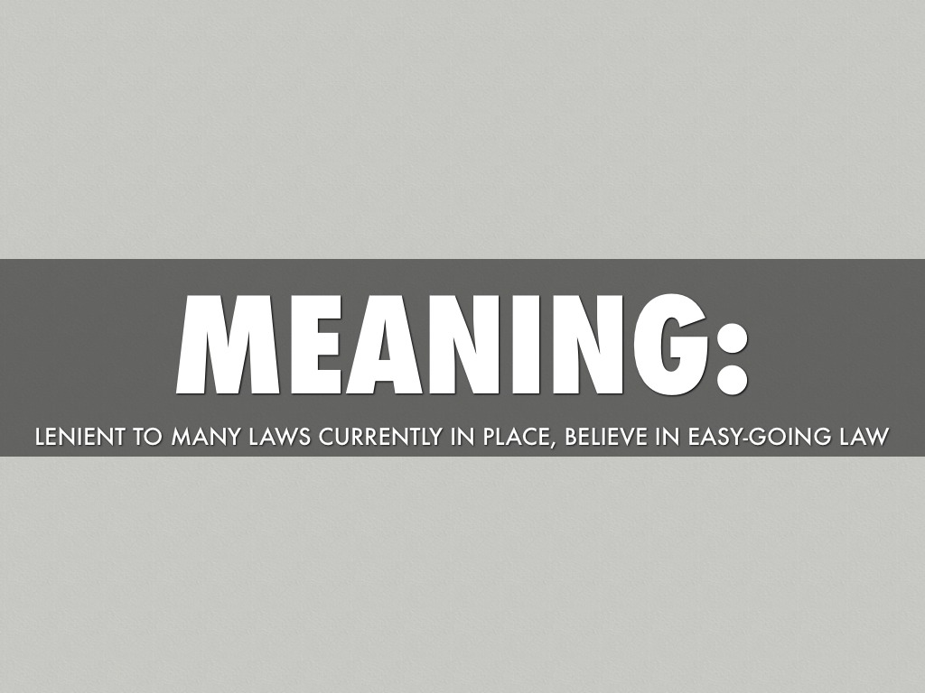LENIENT TO MANY LAWS CURRENTLY IN PLACE, BELIEVE IN EASY-GOING LAW