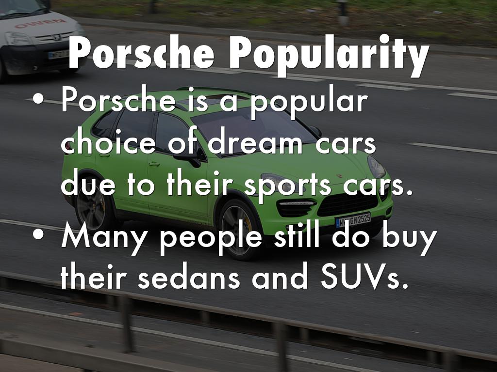 • Porsche is a popular choice of dream cars due to their sports cars.