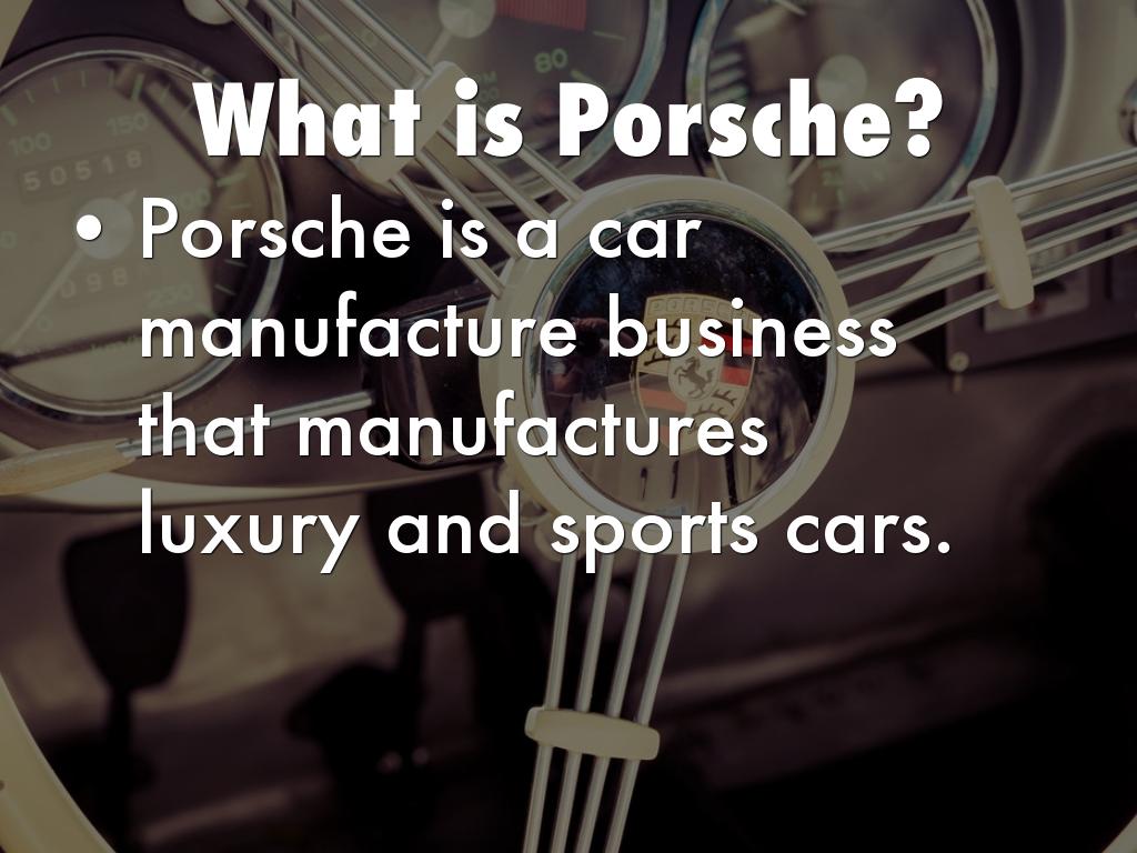 • Porsche is a car manufacture business that manufactures luxury and sports cars.