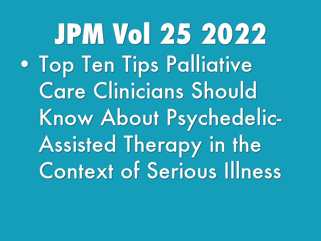 Top Ten Tips Palliative Care Clinicians Should Know About Psychedelic-Assisted Therapy in the Context of Serious Illness