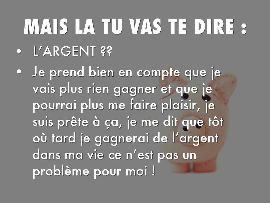Je prend bien en compte que je vais plus rien gagner et que je pourrai plus me faire plaisir, je suis prête à ça, je me dit que tôt où tard je gagnerai de l’argent dans ma vie ce n’est pas un problème pour moi !