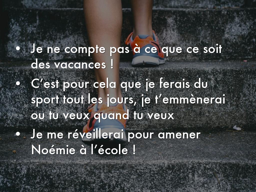 C’est pour cela que je ferais du sport tout les jours, je t’emmènerai ou tu veux quand tu veux