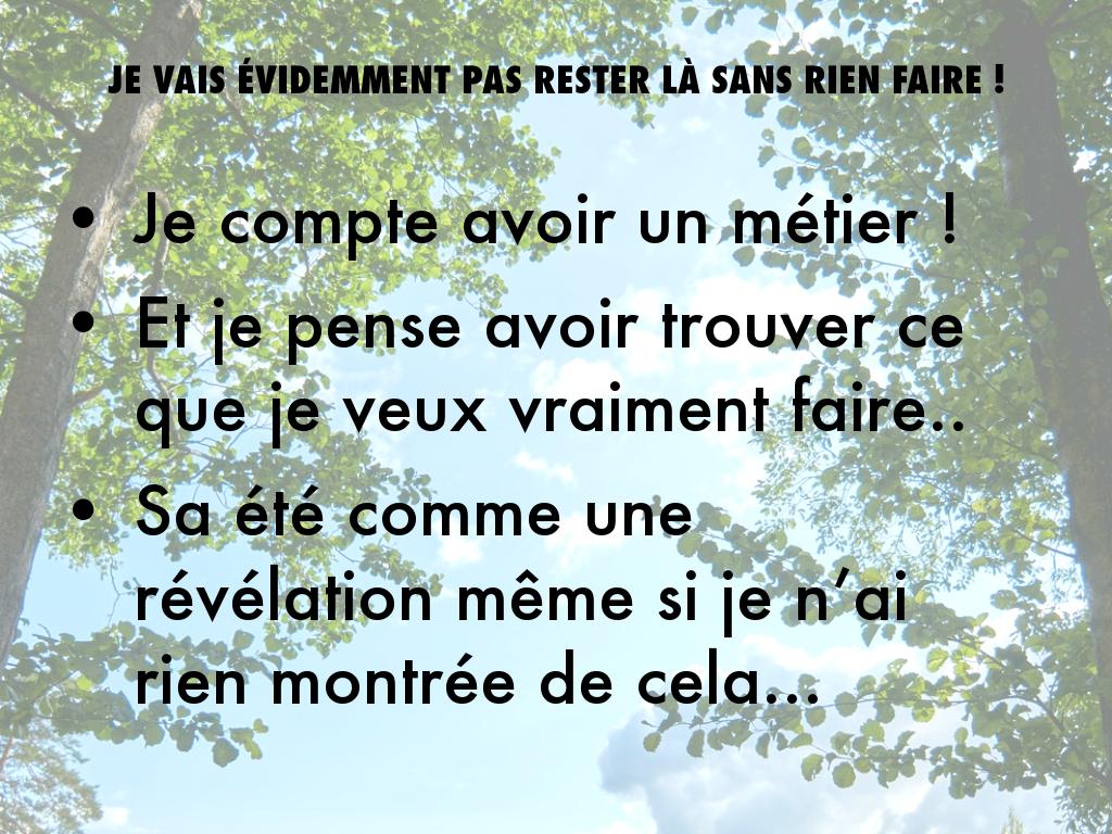 MAIS JE NE COMPTE PAS RESTER SANS RIEN FAIRE..