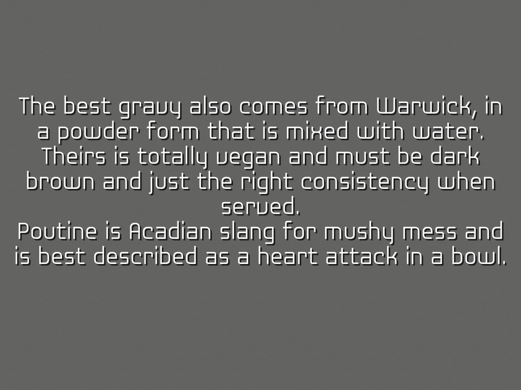 Poutine is Acadian slang for mushy mess and is best described as a heart attack in a bowl.