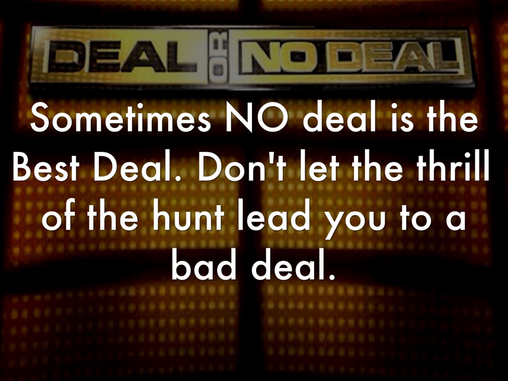 Sometimes NO deal is the Best Deal. Don't let the thrill of the hunt lead you to a bad deal.